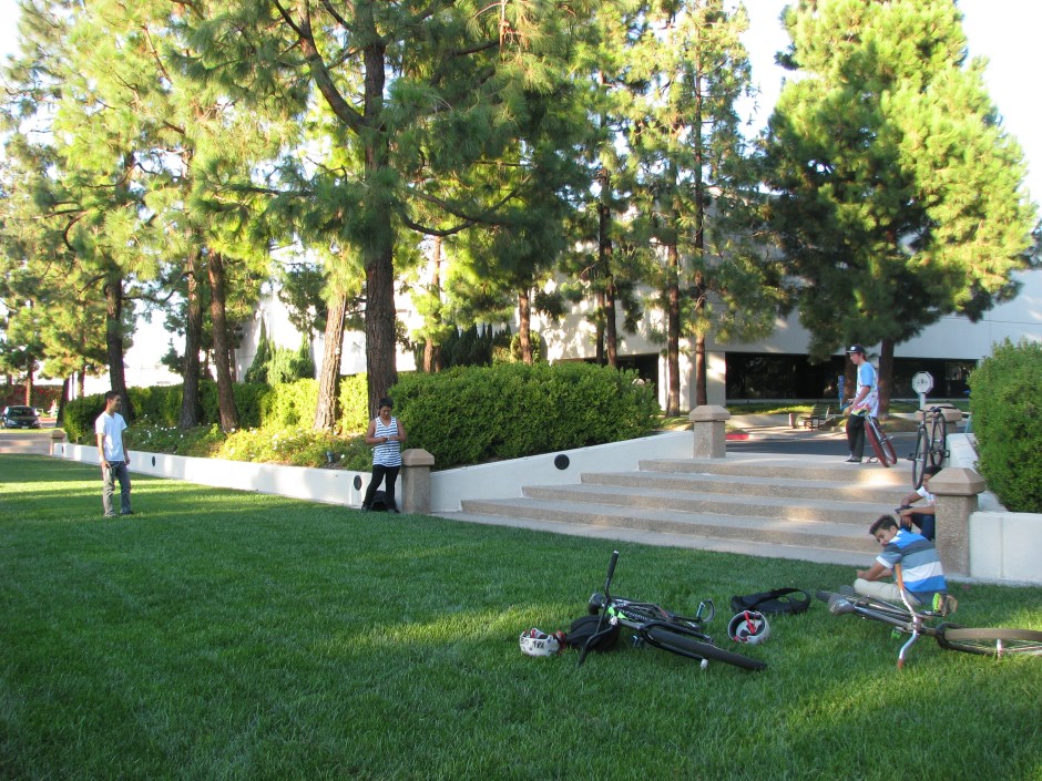 A long 4 stair into grass that after a few jumps, got kicked out of.