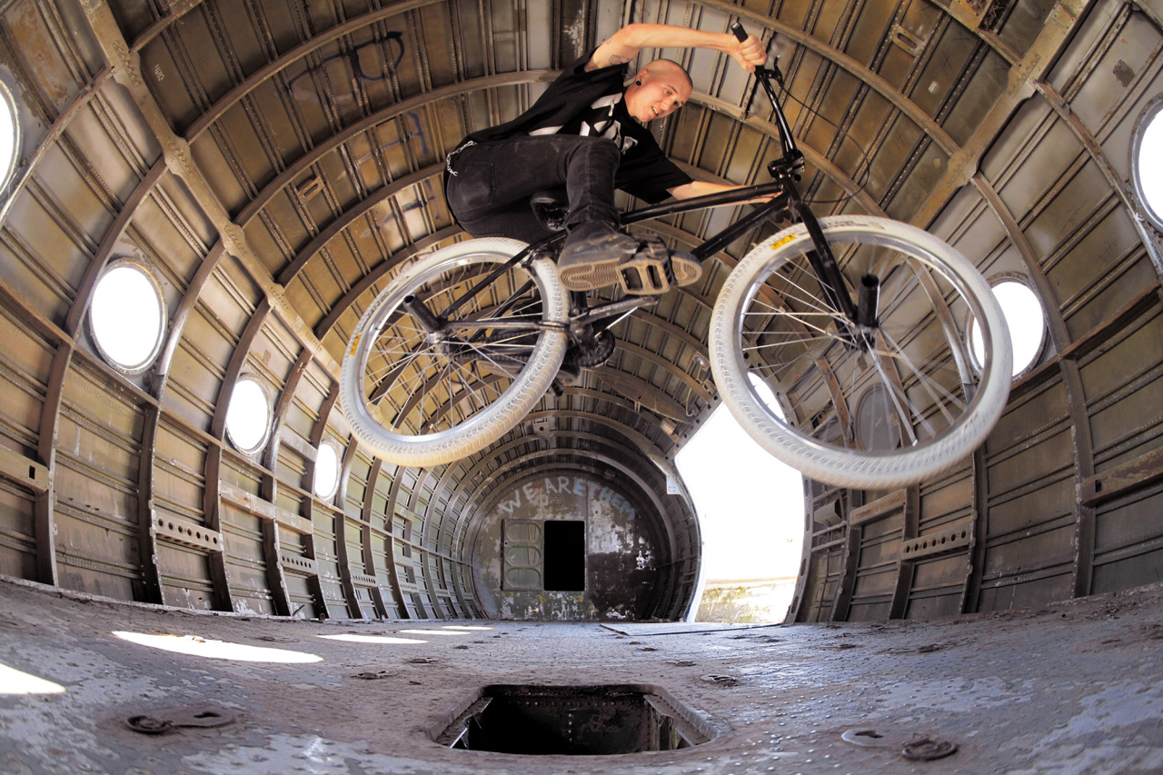 Matt Spencer | Plane 180 Dope shot of Matt hitting a 180 inside a tilted abandoned plane. More on Wolf Drawn. Related
