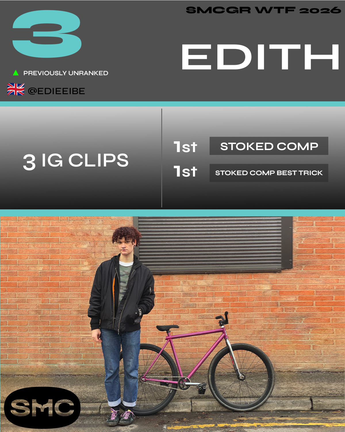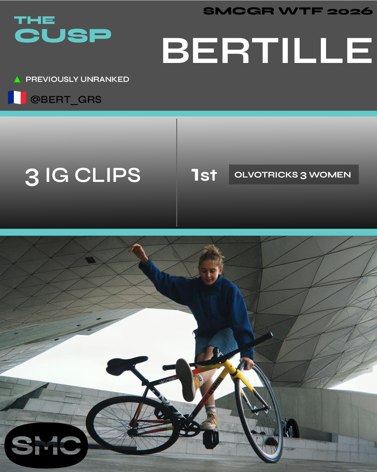 SMCGR 2026 – W/ T / F WOMENS FREESTYLE SMCGR 2026 continues with our reveal for the top Women / Trans / Femme riders in the world! Lots of new faces and talent last year. Click into post for the full rider cards. THE CUSP: TOP 5: Related