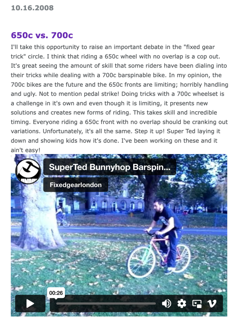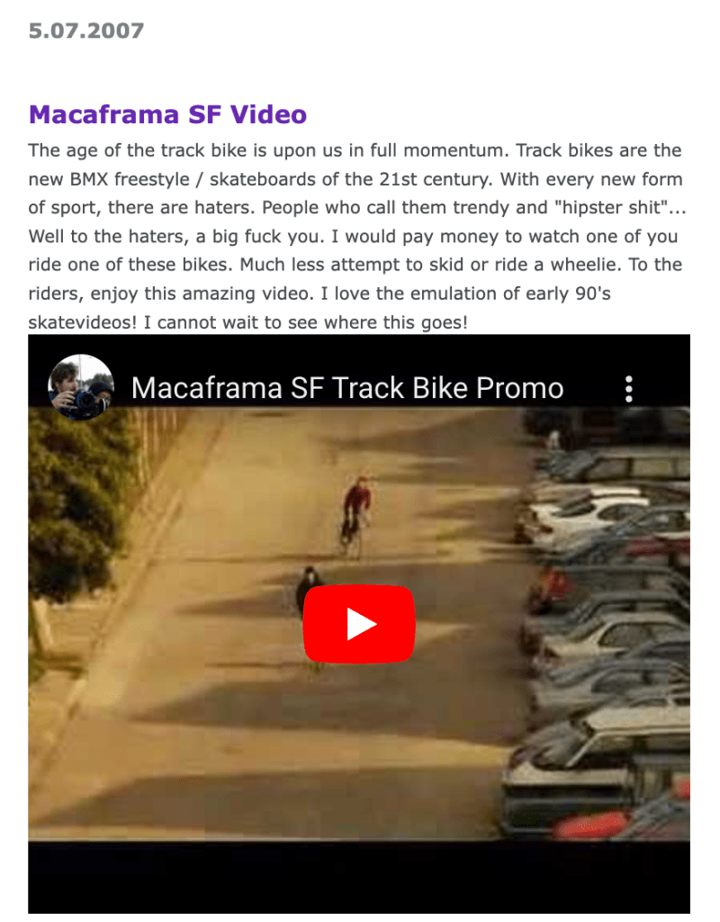 I’m excited to keep uploading fixed gear history to the archive channel, but all I ask for in return is that you subscribe to the channel! If we hit over 1k subscribers, then chapters will be allowed onto the video which will make watching a lot better. Anyways, enjoy: