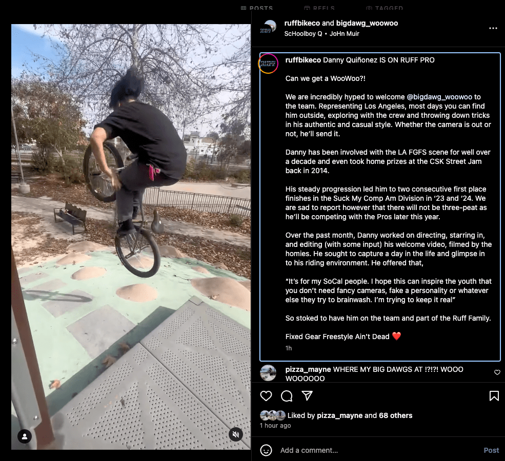 It’s rare these days to get new team rider announcements, but after taking first place two years in a row at the last two Suck My Comps and putting in a crazy amount of work on the daily, Statik aka Danny aka Big Dawg is officially on the Ruff Bike Co team! Go give Danny some love and watch his welcome IG edit here!