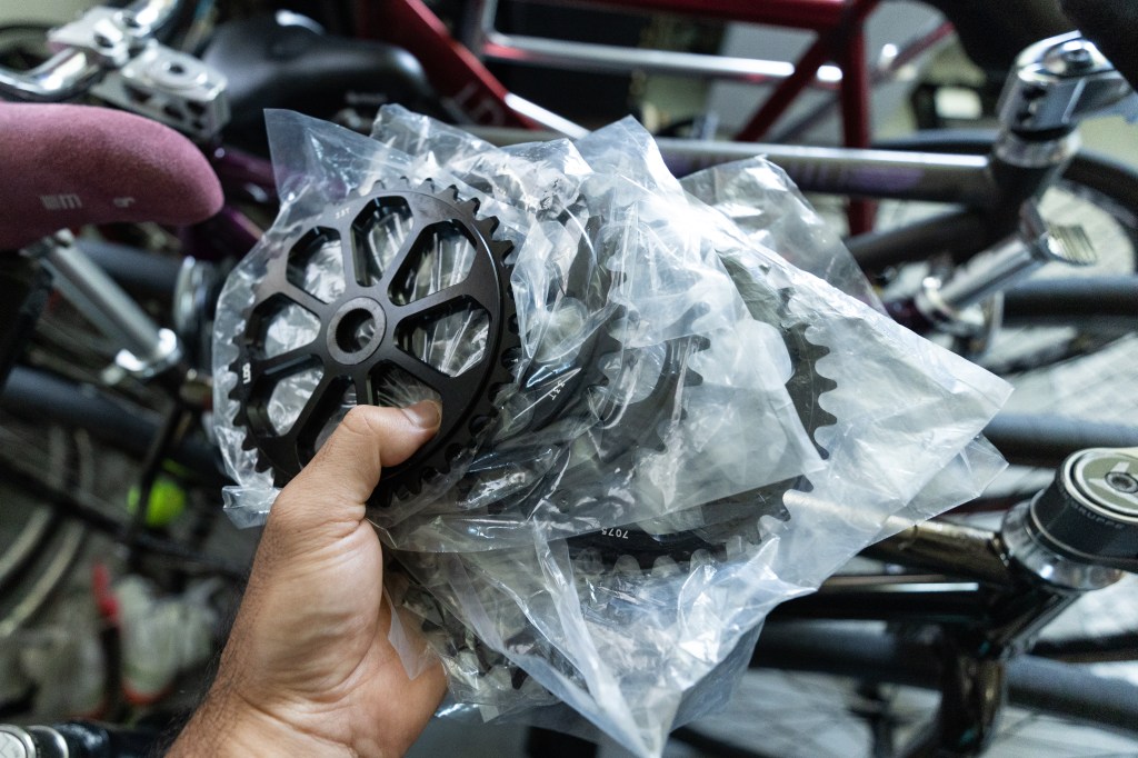 Sprockets are available in 27t, 30t, and 33t in 19mm spindle size. There were 25t sprockets in there too but I didn’t take any, so if there is a desire for 25t let me know and I’ll go grab some from the warehouse.